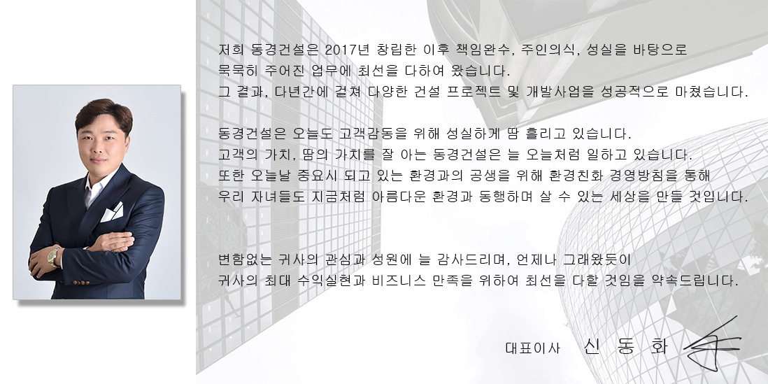 ‘고객의 가치를 최우선으로 하는 기업‘ - 동경건설